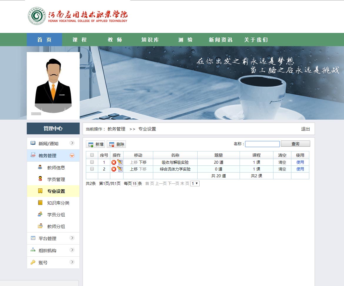 系統的主要功能可以理解為在線“學習與測評”。它的主要功能也集中在兩點,一是學習培訓;二是考試。在學習培訓部分,首先是老師編排課程,然后學生選擇相應課程學習??荚嚥糠?,則由老師錄入試題,隨機生成試卷,學生參加考試。通過記錄學員在線上參加的理論學習、考試、錯題回顧等情況,實現對學員學習情況的全程跟蹤管理和對學生培訓需求的全面掌握。