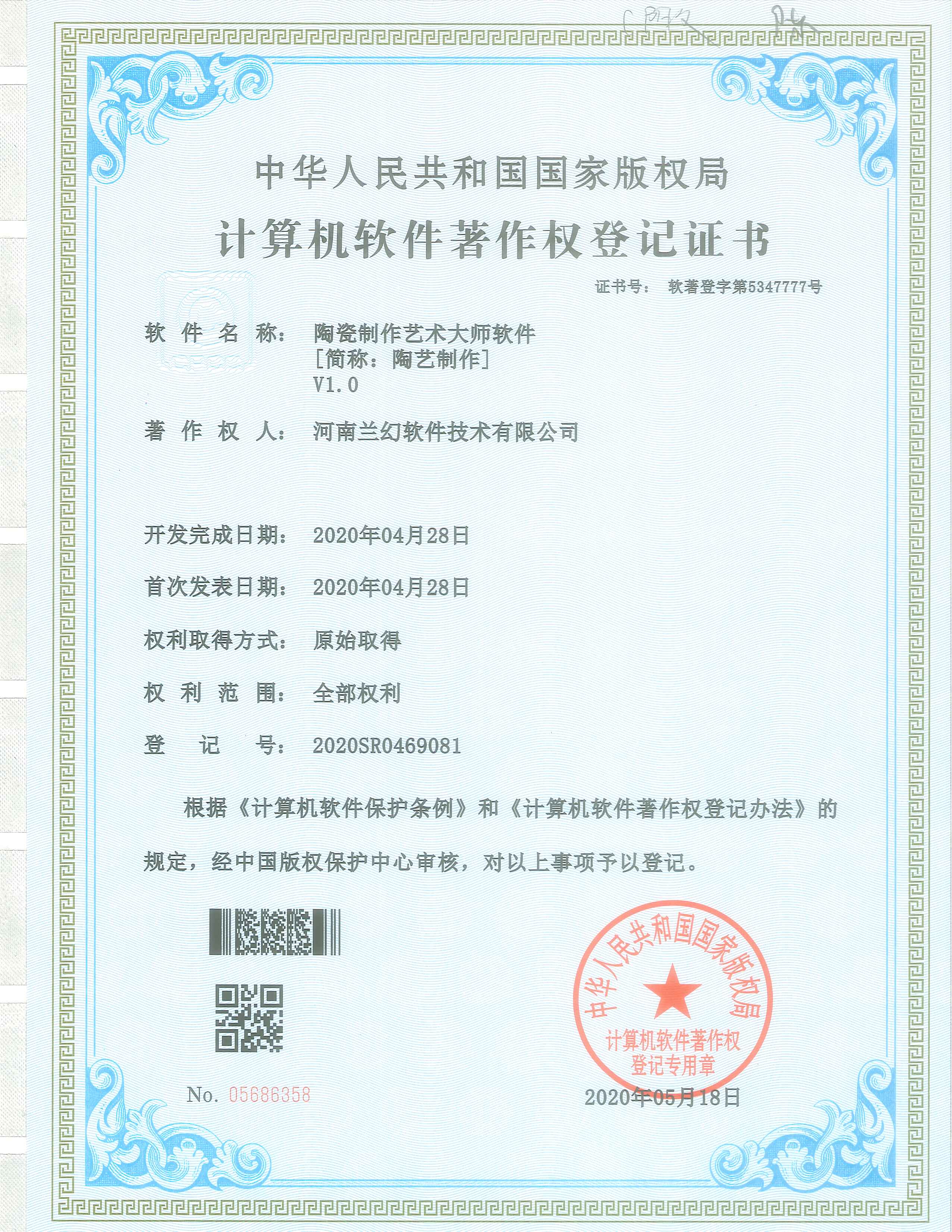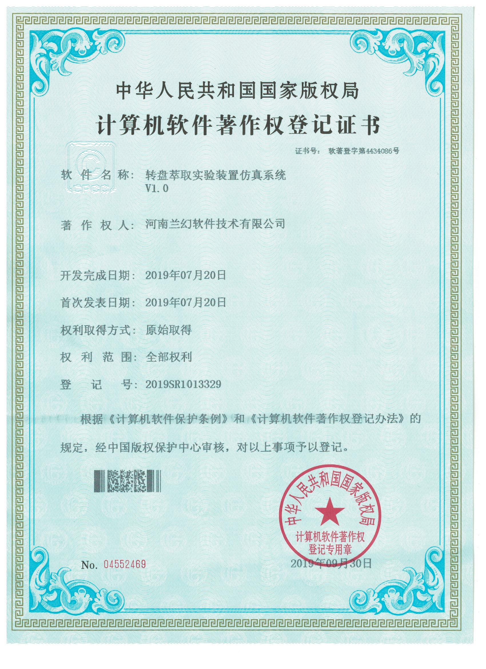 A2/0工藝城市污水處理模擬裝置仿真系統(tǒng) 轉(zhuǎn)盤萃取實驗裝置仿真系統(tǒng)著作權(quán)證書 陶瓷制作藝術(shù)大師軟件著作權(quán)證書