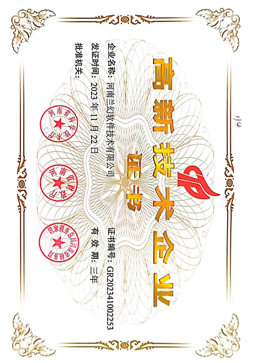 2023年再次被河南省科學技術(shù)廳、河南省財政廳、國家稅務總局河南省稅務局三方認證“高新技術(shù)企業(yè)”。