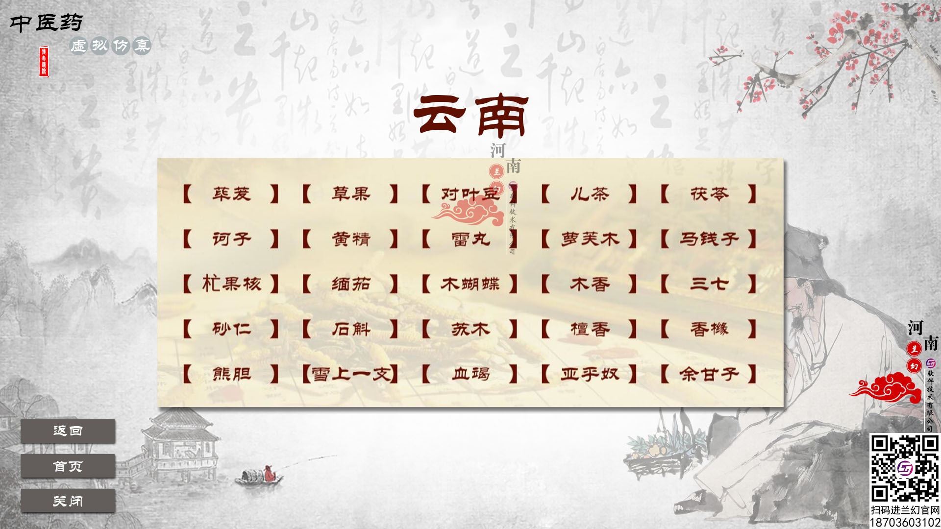 中醫藥虛擬仿真系統之中藥查詢模塊以各省、自治區、直轄市為單位,將道地藥材歸納整理:藥材基源物科屬、分布、生長環境、藥用部位形狀、性狀以及其他相關信息,同時結合相應的照片、語音等教學資源,讓學員中醫藥形成體系化認知。按照:基本信息、圖譜、鑒定、種植、炮制等形成知識體系。便于查詢。