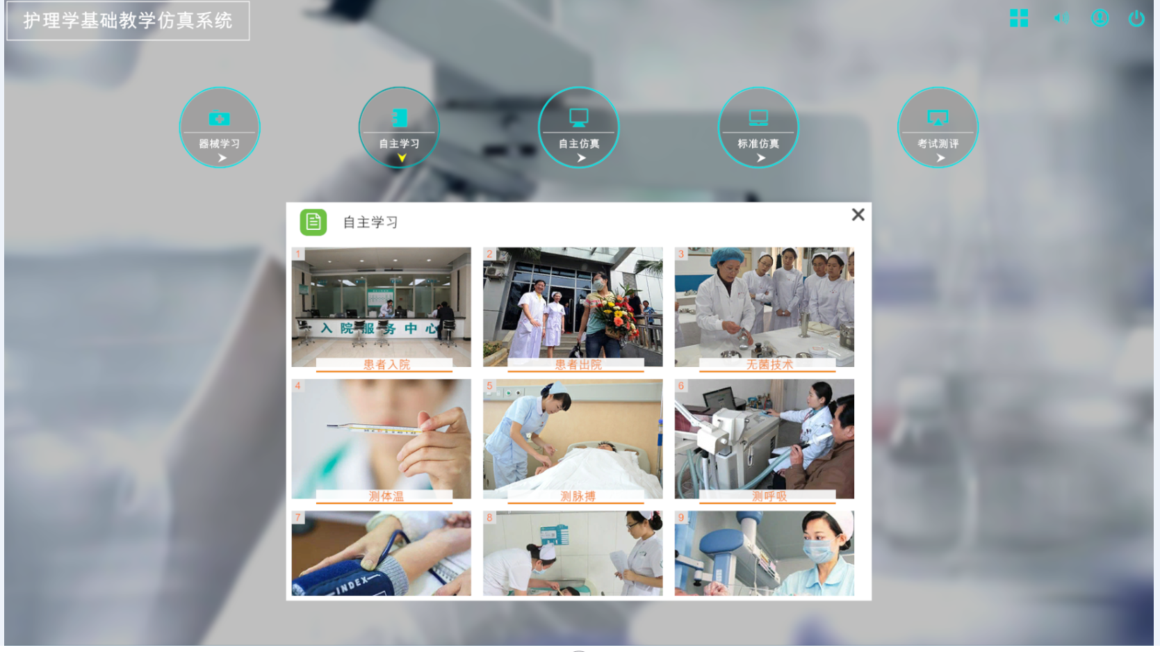 護理虛擬仿真系統-自主學習模塊:解決從理論知識點到實際生產環境中應用認識問題。配套相關理論知識,使學員對理論學習內容有整體把握。對關鍵操作步驟梳理讓學員思路更清晰。把每個實訓科目的操作目的、操作準備、操作步驟、注意事項、醫患溝通、實操視頻等內容進行歸納總結。學員可以進行自主學習,對理論知識進行系統化梳理。