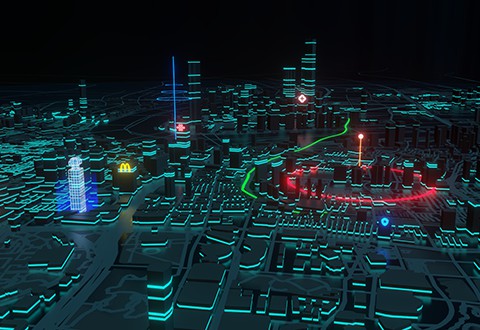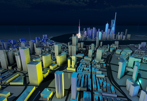 1、城市網絡:園區樓宇中,基本還原城市主要建筑物的輪廓。